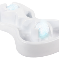 Door de 2 speciaal meegeleverde cubs kunt u eenvoudig ijsballen voor uw hond maken. Deze kunt u vervolgens in de speelbak plaatsen, waarna uw hond al likkend de bal verplaatst.