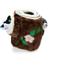 Laat een hond op onderzoek uitgaan en ontdekken wat de boomstam te bieden heeft, zoals krakende geluidjes en 2 schattige speeltjes met een pieper aan de binnenkant.