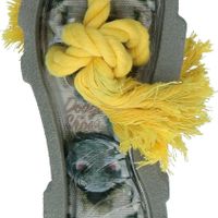 Geef hem dan nu zijn eigen slipper, waarmee kauwen een waar feest wordt en uw eigen schoenen gespaard blijven. Gemaakt van duurzaam materiaal en voorzien van een flosstouw dat zorgt voor nog meer speelplezier dat ook nog eens het gebit van uw hond reinigt.