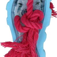Geef hem dan nu zijn eigen slipper, waarmee kauwen een waar feest wordt en uw eigen schoenen gespaard blijven. Gemaakt van duurzaam materiaal en voorzien van een flosstouw dat zorgt voor nog meer speelplezier dat ook nog eens het gebit van uw hond reinigt.