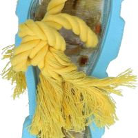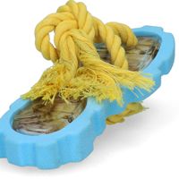 Geef hem dan nu zijn eigen slipper, waarmee kauwen een waar feest wordt en uw eigen schoenen gespaard blijven. Gemaakt van duurzaam materiaal en voorzien van een flosstouw dat zorgt voor nog meer speelplezier dat ook nog eens het gebit van uw hond reinigt.