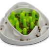 Met de poot, tong of neus, het kan allemaal. Vermindert het schrokken enorm en is geschikt voor zowel droog als nat hondenvoer.