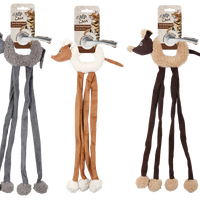 De lange poten van deze grappige muis zijn voorzien van plastic met daaromheen fleece, aan het uiteinde van de poten zit een balletje inclusief bel.