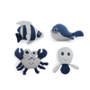 Display gevuld met schattige knuffeltjes, gebaseerd op wilde dieren uit de oceaan