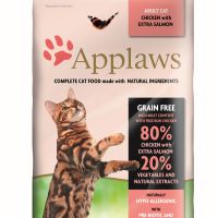 Applaws cat adult chicken/salmonKatten zijn carnivoren en zijn dus gebouwd om vlees te verteren. Daarom bevat dit kwaliteitsvoer 80% kippenvlees met extra zalm (en minder dan 15% koolhydraten). Deze voeding is geschikt voor volwassen katten. De droge brokjes bootsen de natuurlijke voeding van wilde katten na en bevatten zelfs een anti-haarbalformule.Gezonde voedingDeze voeding is gemaakt van natuurlijke ingrediënten. De voeding van uw kat moet zo goed mogelijk overeenkomen met zijn natuurlijke voeding. Applaws gebruikt geen kleurstoffen, smaakstoffen of chemische toevoegingen om de voeding te aromatiseren. Het enige wat u in Applaws vindt is 80% vlees en 20% fruit en groenten en een natuurlijk actief Pro-Bioticum.