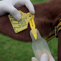 Het oorlabel dient met behulp van een speciaal bevestigingspijltje aan het identificatie en registratie (I&R) oormerk te worden bevestigd.