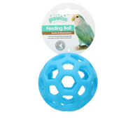 Vogel voerbalDeze kunststof voerbal kan gevuld worden met allerlei lekkernijen of traktaties, zodat een vogel er echt moeite voor moet doen.