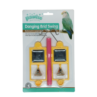 De schommel kan makkelijk worden bevestigd in de kooi. Uitgevoerd met 2 spiegeltjes aan de zijkanten waar een belletje onder hangt.