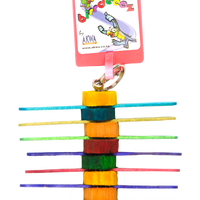 Vrolijk gekleurd vogelspeeltje. Draai de stokjes naar eigen wens in verschillende richtingen. Het belletje aan de onderkant zorgt voor extra speelplezier. Bevestig dit speeltje gemakkelijk aan de kooi d.m.v. het karabijnhaakje.