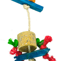 Groot klim- speeltouw inclusief mineraal bal en coral/zandstructuur cilinder! De coral/zandstructuur cilinder draagt bij aan het onderhoud van de pootjes en snavel van uw vogel. Dit speeltje is makkelijk te monteren met behulp van een klein karabijnhaakje. Bevat mineraalballen, cilinders met zandstructuur, touw en een leuke bel aan de onderzijde voor extra speelplezier.