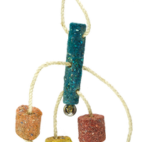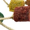 Klim- speeltouw met coral/zandstructuur! Draagt bij aan het onderhoud van de pootjes en snavel van uw vogel. U kunt zelf bepalen op welke hoogte de coral/zandstructuurballen komen te hangen door ze te verschuiven. Dit speeltje is makkelijk te monteren met behulp van het karabijnhaakje.