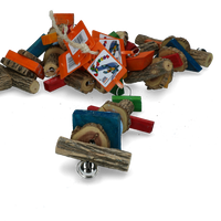 Vrolijk de kooi van uw vogel op met deze kleurrijke vogelspeeltjes. Deze set bestaat uit 6 verschillende speeltjes. Met belletjes, vrolijk gekleurde stukjes hout en mineralen. Leuk om mee af te wisselen of aan te vullen.