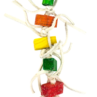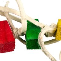 Dit vrolijk gekleurde speeltje van hout en leer is voorzien een belletje Lengte: 42 cmDoeldier: Valkparkieten, parkieten en papegaaien
