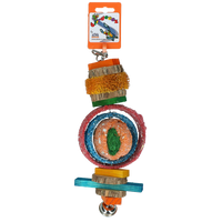 Klim- en speeltouwDraagt bij aan het onderhoud van de pootjes en snavel van uw vogel. Makkelijk te monteren met behulp van het karabijnhaakje. Bevat luffa, rondjes met zandstructuur, gekleurd hout en een leuke bel aan de onderzijde voor extra speelplezier.