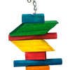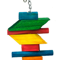 Vrolijk de kooi van uw vogel op met dit kleurrijke vogelspeeltje. Dit speeltje bestaat uit vrolijk gekleurde houten blokjes. Draai de blokjes naar eigen wens in verschillende richtingen. Het belletje aan de onderkant zorgt voor extra speelplezier. Bevestig dit speeltje gemakkelijk aan de kooi d.m.v. het karabijnhaakje.