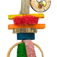 Draagt bij aan het onderhoud van de pootjes en snavel van uw vogel. Makkelijk te monteren met behulp van het karabijnhaakje. Bevat luffa, rondjes met zandstructuur, gekleurd hout en een leuke bel aan de onderzijde voor extra speelplezier.