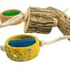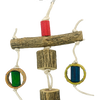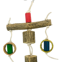 Klim- speeltouw inclusief coral/zandstructuur cilinders! De coral/zandstructuur cilinders dragen bij aan het onderhoud van de pootjes en snavel van uw vogel. Dit speeltje bevat Sekelbos (hout), cilinders met coral/zandstructuur, T-Pillar lederen touw en een leuke bel aan de onderzijde voor extra speelplezier. Het speeltje is makkelijk te bevestigen d.m.v. het karabijnhaakje.