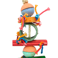 Groot klim- speeltouw inclusief mineraal bal en coral/zandstructuur cilinder! De coral/zandstructuur cilinder draagt bij aan het onderhoud van de pootjes en snavel van uw vogel. Dit speeltje is makkelijk te monteren met behulp van een klein karabijnhaakje. Bevat mineraalballen, cilinders met zandstructuur, touw en een leuke bel aan de onderzijde voor extra speelplezier.