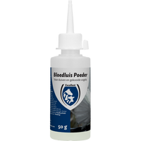 Bloedluis poeder is 100% natuurlijk poeder voor een effectieve en snelle bestrijding van bloed- en vederluizen bij duiven en gekooide vogels. Ter voorkoming van bloedarmoede en conditieverlies. Bloedluispoeder is samengesteld uit natuurlijke stoffen die vergelijkbaar zijn met het stofbad dat de vogels van nature gebruiken. Veilig in gebruik met een snelle en langdurige werking. Bloedluispoeder is ook uitstekend geschikt voor preventief gebruik of op jonge dieren.