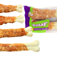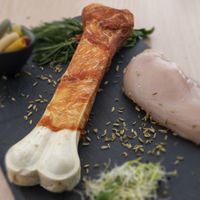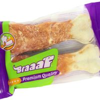 Uw hond zal zeker smullen van Braaaf geperst been omhuld met heerlijk kippenvlees! Door het heerlijke vlees om het bot heen is dit bot zelfs smakelijk voor de kieskeurige honden!