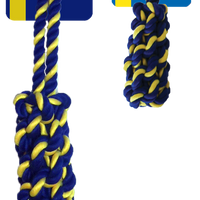 Pet Sport Touwen zijn oersterke- gevlochten touwen die gemaakt zijn van zorgvuldig geselecteerd katoen (1ste klasse-kwaliteit). Er zijn veel verschillende flostouwen op de markt, veelal gemaakt van afvalkatoen, deze zijn daarom niet te vergelijken met onze unieke flostouwenlijn van Pet Sport USA. Daarnaast zijn de Pet Sport USA flostouwen gemaakt uit de kleurcombinatie van blauw en geel, onderzoek wijst uit dat deze kleuren te zien zijn voor honden waardoor dit touw de voorkeur krijgt bij honden boven alle andere touwen!