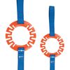 De ring is gemaakt van speciaal TPR-rubber dat zich uitstrekt en weer in originele vorm samentrekt tijdens het spelen. Ook is de ring ideaal om mee te apporteren. Aan de ring zitten sterke nylonlussen waardoor uw hond makkelijk grip houd op dit speeltje.