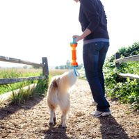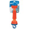 Geschikt voor het ruige werk. De oersterke binnenzijde is omhuld door een rubber (TPR) buitenkant. Door het ruwe design is hij makkelijk op en vast te pakken voor de hond. Voorzien van 2 nylon flappen voor extra speel plezier.
