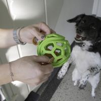 Geweldig speelgoed dat speciaal ontworpen is om traktaties in te verstoppen. De bal is gemaakt van duurzaam natuurlijk rubber en is oersterk. Natuurlijk kan de bal ook worden gebruikt voor bijvoorbeeld apporteerspelletjes.