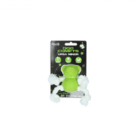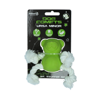 Deze vrolijk gekleurde beer stuitert alle kanten op en is super duurzaam. Het zachte touw masseert het tandvlees en helpt zo tanden en tandvlees schoon te houden.