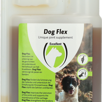 Dog Flex bevat MSM, gehydrolyseerd Collageen type II, Glucosamine (HCL), Chondroïtinesulfaat, Vitamine C en lichaamseigen smeerstof Hyaluronzuur.