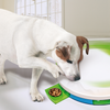 Met een beetje oefening en hulp van zijn neus moet de hond proberen de ‘lades’ te openen om zo de traktatie eruit te krijgen.