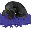 Snel en gehaast eten, zoals schrokken, kan resulteren in een maagtorsie en/of overgewicht. Een maagtorsie is een levensbedreigende aandoening, waarbij de maag omdraait in de buikholte en zal worden afgesloten van de darmen en de slokdarm. De gevolgen hiervan zijn afknellen of zelfs kneuzingen van organen en weefsels en kan zo leiden tot scheuren en afsterven hiervan. Symptomen van maagtorsie zijn: Een verhoogde speekselproductie, het uitzetten van de buikholte en loos braken. Schrokken beïnvloed ook de spijsvertering negatief, aangezien er hele brokken in de maag terecht komen, wat resulteert in overgewicht. Daarnaast krijgt een hond veel lucht binnen wanneer hij schrokt, dit leidt tot winderigheid. Met de Eat Slow Live Longer Play Mat zal uw hond beter kauwen wat een positieve bijdrage heeft op de gezondheid van het gebit.
