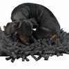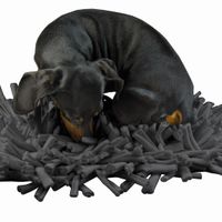 Snel en gehaast eten, zoals schrokken, kan resulteren in een maagtorsie en/of overgewicht. Een maagtorsie is een levensbedreigende aandoening, waarbij de maag omdraait in de buikholte en zal worden afgesloten van de darmen en de slokdarm. De gevolgen hiervan zijn afknellen of zelfs kneuzingen van organen en weefsels en kan zo leiden tot scheuren en afsterven hiervan. Symptomen van maagtorsie zijn: Een verhoogde speekselproductie, het uitzetten van de buikholte en loos braken. Schrokken beïnvloed ook de spijsvertering negatief, aangezien er hele brokken in de maag terecht komen, wat resulteert in overgewicht. Daarnaast krijgt een hond veel lucht binnen wanneer hij schrokt, dit leidt tot winderigheid. Met de Eat Slow Live Longer Play Mat zal uw hond beter kauwen wat een positieve bijdrage heeft op de gezondheid van het gebit.