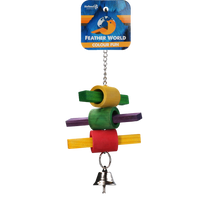 Feather World Colour funDit speeltje past in iedere kooi en bestaat uit houten deeltjes aan een kettinkje.