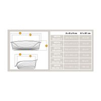 - 49 x 36 x 17,5 cm (maat 2) .61,5 x 45 x 21,5 cm (maat 4).70,5 x 52 x 23,5 cm (maat 6).82 x 89,5 x 25 cm (maat 8).93,5 x 68 x 28,5 cm (maat 10).111 x 80,5 x 33,5 cm (maat 12).