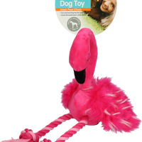 Deze schattige flamingo is zeer stevig en zacht omdat hij gemaakt is van knuffelig pluche. Binnenin zit een pieper en de benen zijn gemaakt van stevig touw. Je hond zal van deze rare vogel gaan houden en er de hele dag van genieten.
