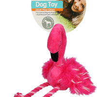 Deze schattige flamingo is zeer stevig en zacht omdat hij gemaakt is van knuffelig pluche. Binnenin zit een pieper en de benen zijn gemaakt van stevig touw. Je hond zal van deze rare vogel gaan houden en er de hele dag van genieten.