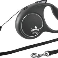 Bij Flexi kunt u kiezen tussen lijnen met een koord en lijnen met tape. Het is een persoonlijke voorkeur welke variant u het beste bevalt. In principe zijn beide soorten even sterk en veilig in gebruik. Het Black Design Cord bevat een koord.