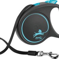 Flexi hondenriem Black Design met een lengte van 5 meter. De riem heeft maat L wat betekent dat het voor honden tot 50 kg geschikt is. De kleur is zwart met blauw. De riem is een band/tape voor extra stevigheid.