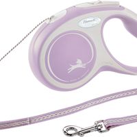 Flexi hondenriem New Comfort met een lengte van 5 meter. De riem heeft maat S wat betekent dat het voor honden tot 12 kg geschikt is. De kleur is roze met lichtgrijs. De vorm van de riem is een koord.