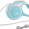 Flexi hondenriem New Comfort met een lengte van 3 meter. De riem heeft maat XS wat betekent dat het voor honden tot 8 kg geschikt is. De kleur is lichtblauw met lichtgrijs. De vorm van de riem is een koord.