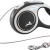 Bij Flexi kunt u kiezen tussen lijnen met een koord en lijnen met tape. Het is een persoonlijke voorkeur welke variant u het beste bevalt. In principe zijn beide soorten even sterk en veilig in gebruik. Het Nieuwe Comfort Koord bevat een koord.
