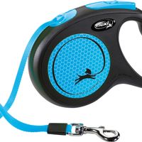 Flexi hondenriem New Neon met een lengte van 5 meter. De riem heeft maat M wat betekent dat het voor honden tot 25 kg geschikt is. De kleur is neon blauw met zwart. De riem is een band/tape voor extra stevigheid.