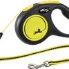 Flexi hondenriem New Neon met een lengte van 5 meter. De riem heeft maat XS wat betekent dat het voor honden tot 12 kg geschikt is. De kleur is zwart met neon geel. De vorm van de riem is een koord.