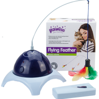 Haal het natuurlijke instinct van uw kat naar boven met de Flying Feather. Laat uw kat jagen op de veertjes aan het speeltje terwijl u het bedient met de afstandsbediening (batterijen inbegrepen).