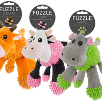 Fuzzle knuffelspeeltjes zijn de ideale knuffel voor uw hond en zijn superzacht. Deze knuffelspeeltjes zijn zeer geschikt voor pups en bevatten 5 squeakers (piepers) voor extra speelplezier!