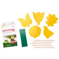 Geflitste bladluizen vliegen van plant naar plant om zich te verspreiden. Hun talrijke nakomelingen voeden zich met plantensap. De larven van rouwmuggen en mineervliegen beschadigen bladeren door zich te voeden met hun interne weefsel. Deze plantenplagen kunnen echter gemakkelijk worden gelokt in een kleverige val met de kleur geel. Steek een van de meegeleverde houten stokjes in de sleuf aan de onderkant van de kleefstrips, steek deze in een bloempot en trek de beschermende folies eraf. De gebruikte lijm is geurloos voor mensen. Door gebruik te maken van gele vallen kunt u plantenplagen ontdekken en controleren.Specificaties
