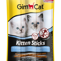 GimCat Kitten Sticks hebben een hoog gehalte aan vlees en bevatten veel calcium. Calcium is belangrijk voor bot-, skelet- en tandheelkundige opleiding. GimCat Kitten Sticks- de perfecte kauwen en knabbelen tussendoorSpecificaties