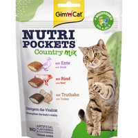 GimCat Nutri Pockets Country Mix zijn knapperige kussentjes met een heerlijke vulling. De eend, rund & kalkoen versie is bijzonder lekker en bevat ook vitamine A, E en D3. Samen activeren ze het afweersysteem van het lichaam en verhogen ze de vitaliteit.Specificaties