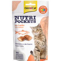 GimCat Nutri Pockets zijn knapperige kussentjes met een heerlijke vulling. De zalmversie bevat natuurlijke omega-3 & -6 vetzuren om het welzijn te verhogen en het immuunsysteem te ondersteunen.Specificaties